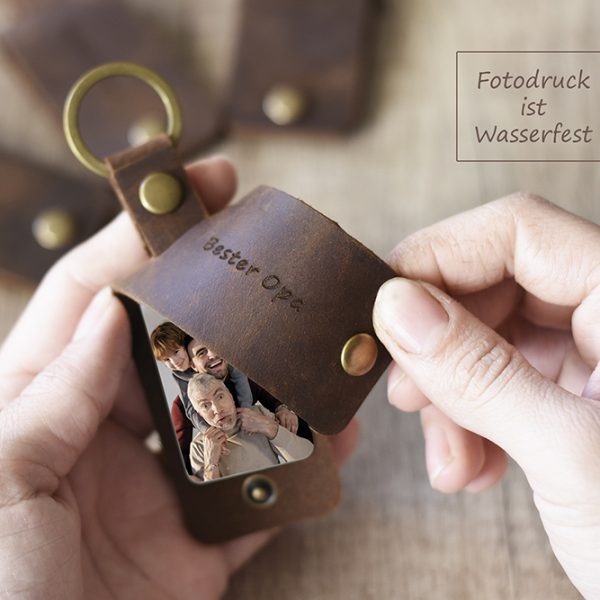 Leder SchlĂŒsselanhĂ€nger mit Foto und Gravur personalisiert